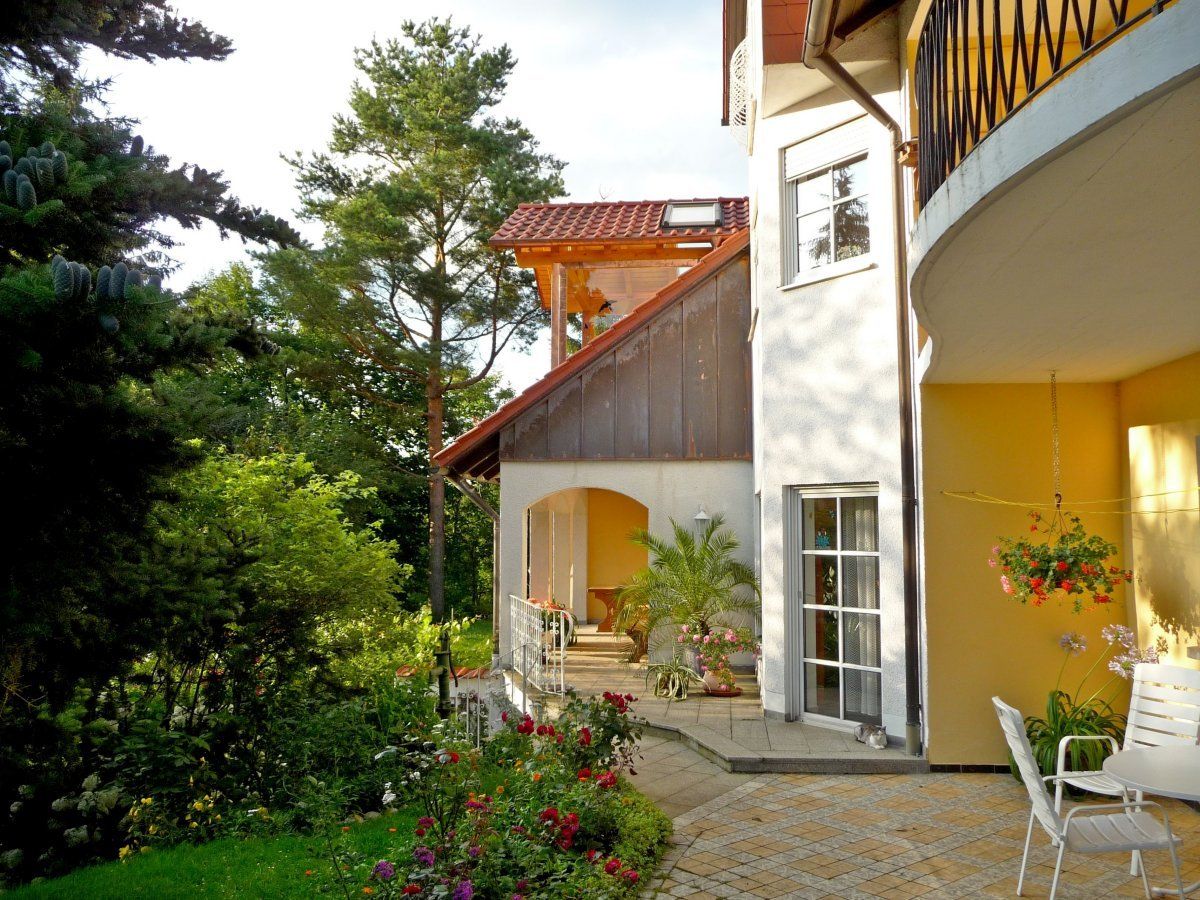 Alle drei Ferienwohnungen haben Zugang zu unserem schönen, parkähnlichen Garten, der mit seiner Blumenpracht und Pflanzenvielfalt zum Verweilen einlädt. Eine Feuerstelle und eine Grillhütte sorgen auch bei kühleren Temperaturen für besondere abendliche Momente.