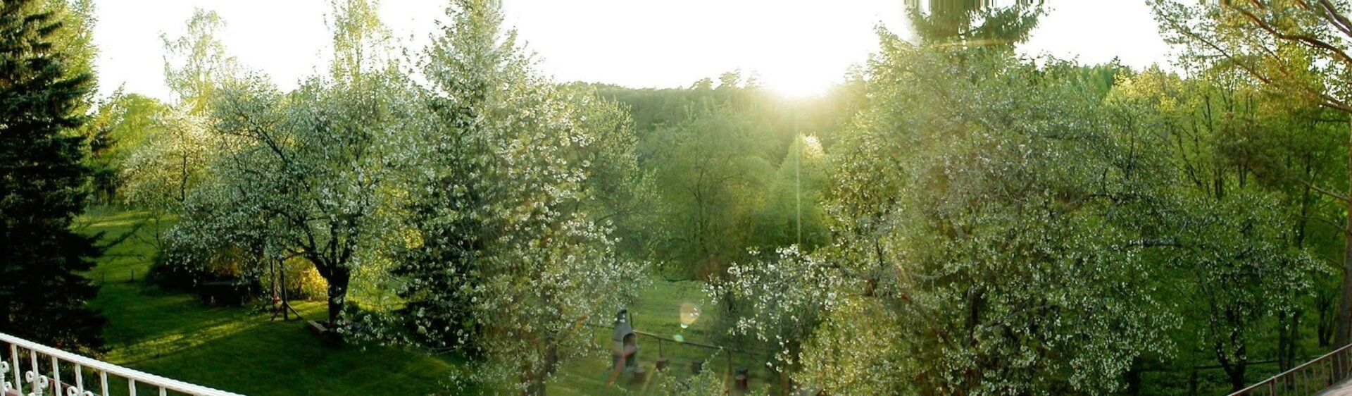 Mit seinen 2.000 m2 ist unser Garten fast schon ein Park. Hier finden Sie garantiert ein ruhiges Plätzchen.